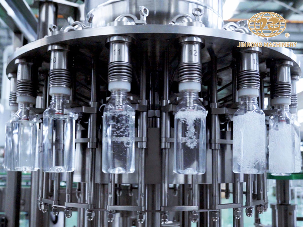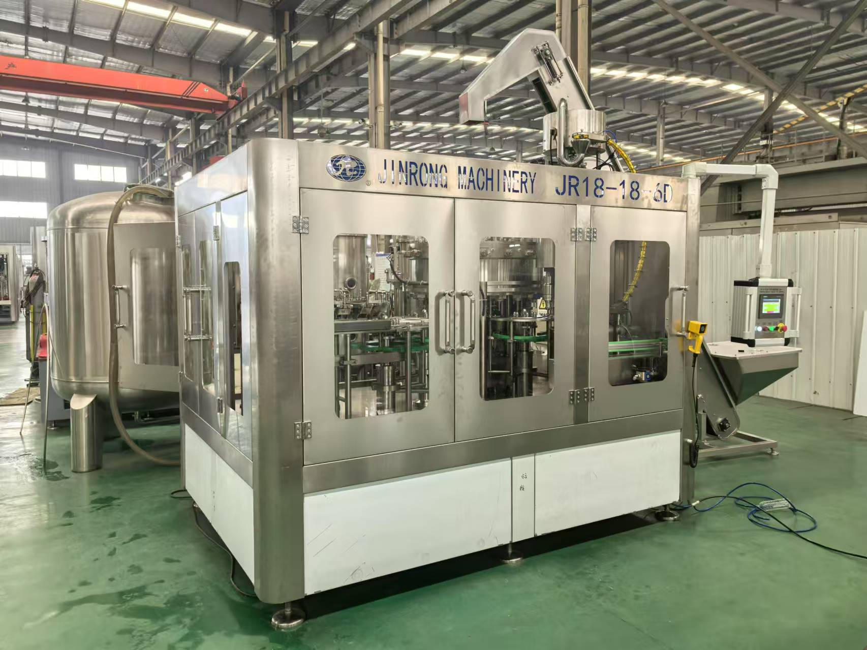 金榮飲料機械廠家制造供應的全套飲料生產線、果汁生產線、碳酸飲料生產線、小瓶礦泉水灌裝設備、大瓶水生產線、桶裝水生產線、純凈水灌裝機設備、瓶裝礦泉水灌裝生產線、易拉罐啤酒灌裝機等系列產品主要運用在純凈水,礦泉水,果汁,茶,熱灌裝飲料,功能飲料,含汽飲料,碳酸飲料,啤酒等液體飲料灌裝生產。其供應的灌裝生產線可配套全自動吹瓶機、水處理設備、前處理設備、飲料殺菌設備、貼標機、包裝機等相關配套機械設備。金榮多年來的設備研發和制造經驗,讓金榮機械為飲料生產企業和水廠等提供了穩定的全套灌裝生產線設備。